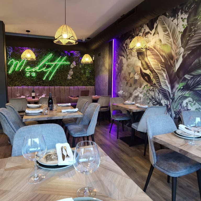 Ya sea para celebrar momentos especiales, una velada romántica o una comida entre amigos, Meditt23 es tu restaurante en Getafe, donde cada detalle está pensado para que vivas una experiencia inolvidable.